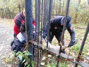 Strážníci zachraňovali zaklíněnou srnu z železného plotu.