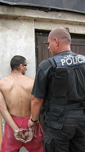 Dne 22.8. v 13,53 hod volal na tísňovou linku městské policie neznámý muž, který sdělil, že v ulici Střelecká někdo zřejmě vykrádá garáže. Na místo byla vyslána hlídka strážníků, která zjistila, že je zde násilně otevřeno několik garáží a že v jedné z nich se skrývá neznámý muž. Hlídka muže vyzvala aby opustil svůj úkryt, ale ten na výzvy nereagoval a z místa se pokusil uniknout. Hlídka muže dostihla a po krátké potyčce neznámého zpacifikovala. Jednalo se o Romana M.(1975), který byl ozbrojen nožem, kterým způsobil jednomu ze zasahujících strážníků zranění na ruce. Na místo byla přivolána Policie ČR, která si celý případ převzala k dořešení.