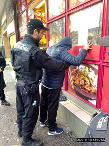 Dne 3.11.2022 získala městská policie zprávu o fyzickém napadení ženy neznámým pachatelem. Tato událost se odehrála v centru města, kde dle oznamovatelů měl neznámý muž udeřit pěstí do obličeje nicnetušící procházející ženu, způsobit jí zranění v oblasti oka a nosu a poté měl z místa utéci. V rámci spolupráce s Policií ČR byla získána fotografie útočníka, která byla rozdána mezi strážníky a mohlo se přistoupit k pátrání po tomto individuu. Strážníci během svých pochůzek navštěvovali různá zákoutí, herny, nádraží a veřejná prostranství, kde se většinou zdržují lidé ze sociálně slabého prostředí a hledali tohoto zbabělého útočníka. Při svém pátrání hlídky využívaly svých místních znalostí i různých kontaktů, ale útočníka se jim nedařilo najít. Štěstí se na ně „usmálo“ až po pěti dnech, kdy si hlídka, vykonávající kontrolní činnost v centru města všimla v ulici Hrnčířská muže, odpovídajícího popisu osoby, která fyzické napadení na ženě provedla. Výše uvedený muž měl na sobě i stejné oblečení jako v den útoku, kdy byla pořízena jeho fotografie. Hlídka ani na okamžik nezaváhala a dotyčného zadržela. Šetřením bylo zjištěno, že se jedná o muže středního věku, bytem Trmice. Po těchto nezbytných úkonech byl muž dopraven na Policii ČR, kde byl předán službukonajícímu policistovi k dalšímu šetření.