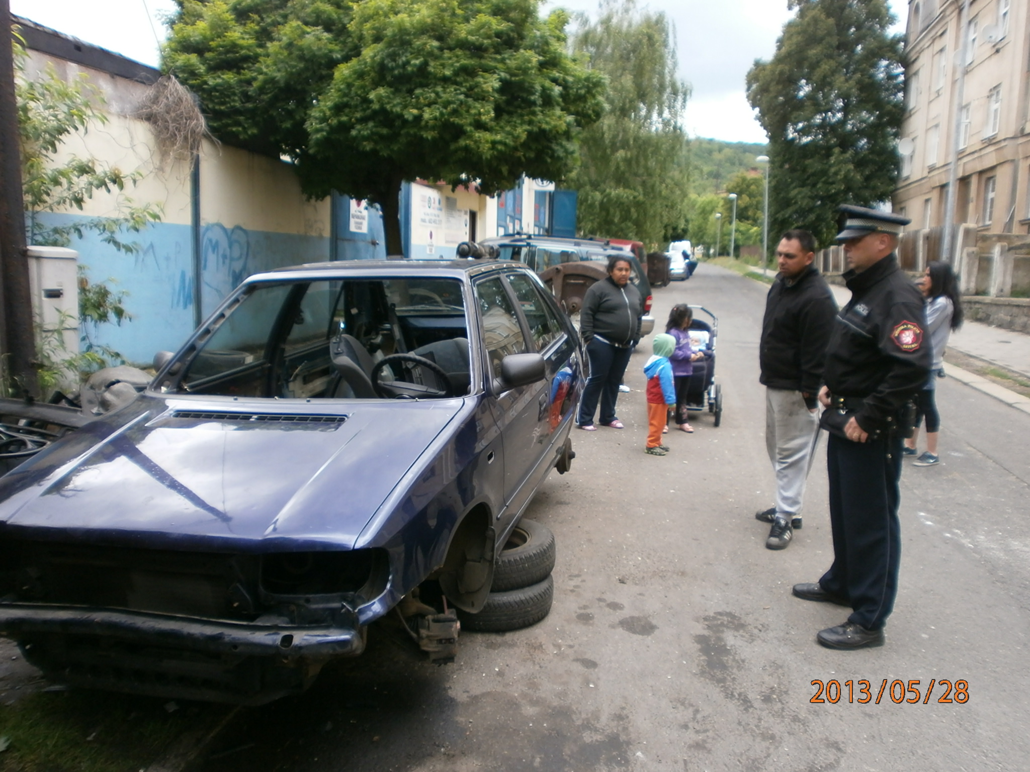 Dne 28.5.2013 v 14.00 hod., vykonávala hlídka městských strážníků pochůzkovou činnost v obvodu Předlice, když si v ulici U Jeslí všimla neznámého muže, který zde na chodníku rozebíral starý osobní automobil a věci, které nebyly vyrobeny z kovu odhazoval na nedaleký trávník. Šetřením bylo zjištěno, že se jedná o Miroslava D.(1989), bytem Trmice, který hlídce sdělil, že vozidlo rozebírá proto, aby ho mohl prodat ve sběrných surovinách, protože s nekovovými částmi ho zde nechtějí vzít a o tom, že odkládat odpady mimo sběrná místa nebo popelnice je zákonem zakázáno nic neví. Lustrací bylo dále zjištěno, že rozebírané vozidlo není v pátrání a ani ho nikdo nepostrádá. Po tomto zjištění bylo jmenovanému sděleno důvodné podezření ze spáchání přestupku, a to neoprávněného založení skládky a ukládání odpadu mimo vyhrazená místa. Po zadokumentování celého případu byl tento předán k dořešení příslušné přestupkové komisi.