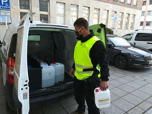 I dnes pokračovalo dozásobování domovů pro seniory hygienickými a ochrannými prostředky. Strážníci do těchto domovů rozvezli 500 ochranných roušek, 95 litrů dezinfekčních prostředků na mytí podlah a povrchů a 145 balení desinfekce na ruce. Aby byla ochrana našich seniorů ještě důkladnější, bylo jim strážníky distribuováno 343 ochranných štítů.