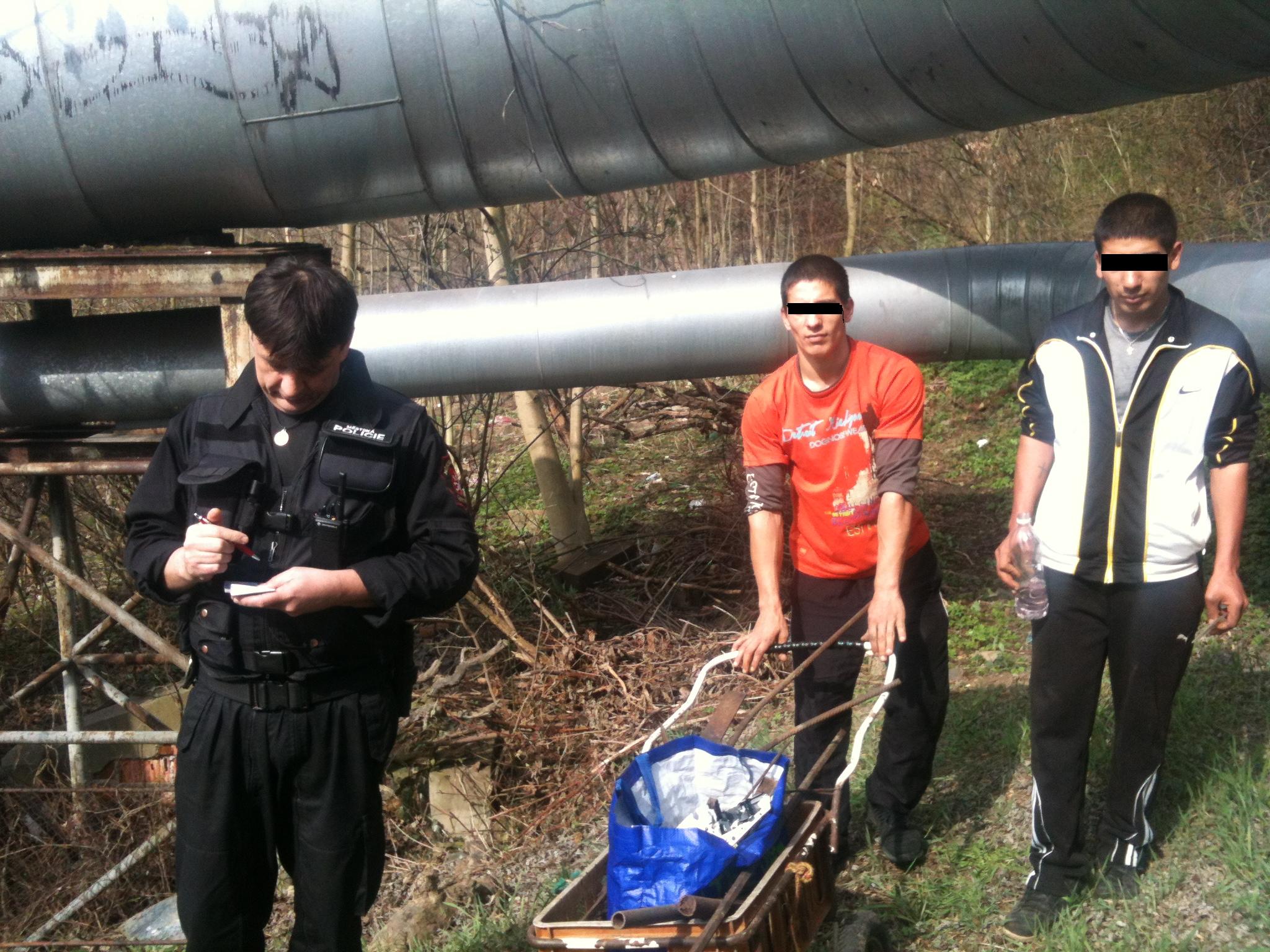 Dne 26.3.2014 v 11,05 hod., prováděla hlídka strážníků pochůzkovou činnost v obvodu Klíše, kde si všimla skupinky tří osob, které přicházely ze směru od zahrádkářské kolonie na Konvalinkovém vrchu a před sebou tlačily ruční vozík, naložený železným šrotem. Šetřením bylo zjištěno, že se jedná o Aranku G.(1996), bytem Česká Kamenice, Milana T,(1989) a Patrika K.(1991), oba bytem Ústí nad Labem. Na dotaz strážníků, jak ke zmíněnému šrotu přišli, jmenovaní odpověděli, že celý náklad našli pohozený nedaleko odtud. Vzhledem k tomu, že dotyční nedovedli hodnověrně prokázat, kde a jak ke šrotu přišli, byl jim tento odebrán a všichni jmenovaní byli z místa strážníky vykázáni. Po zadokumentování celé ho případu, byl tento předán příslušné přestupkové komisi k dořešení.