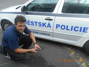 Dne 27.8.2017 v 11,50 hod., telefonoval na operační středisko městské policie oznamovatel, který operátorovi sdělil, že v ulici Výstupní našel želvu, a že na strážníky počká na zastávce MHD, ve zmíněné ulici, kde jim želvu předá. Zde také byla želva strážníkům předána a ti ji převezli do městského útulku pro opuštěná zvířata, kde ji předali odpovědnému pracovníkovi.