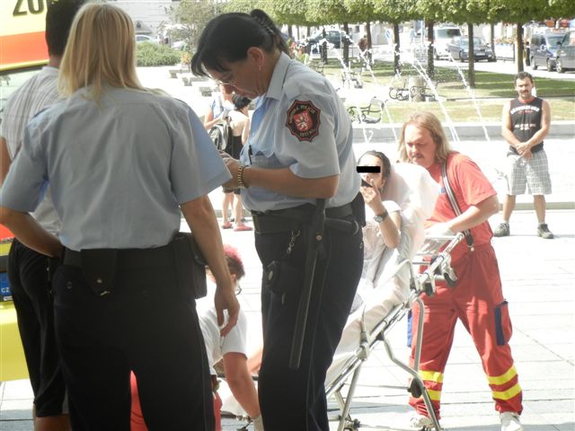Dne 21.8. v 13,20 hod. si hlídka strážníků, která vykonávala pochůzkovou činnost v centru města všimla ženy, která patrně z vedra zkolabovala před vchodem do magistrátu. Strážníci ihned dotyčné poskytli první pomoc a na místo přivolali rychlou záchrannou službu, která si dotyčnou převzala a odvezla k dalšímu ošetření do Masarykovy nemocnice. Šetřením bylo zjištěno, že se jedná o Lenka K.(1980). I dnes strážníci ze skupiny prevence kriminality a dopravní výchovy rozdávali v centru města kolemjdoucím pitnou vodu a radili, jak se chovat v těchto parných dnech aby k takovýmto případům docházelo jen minimálně.