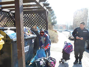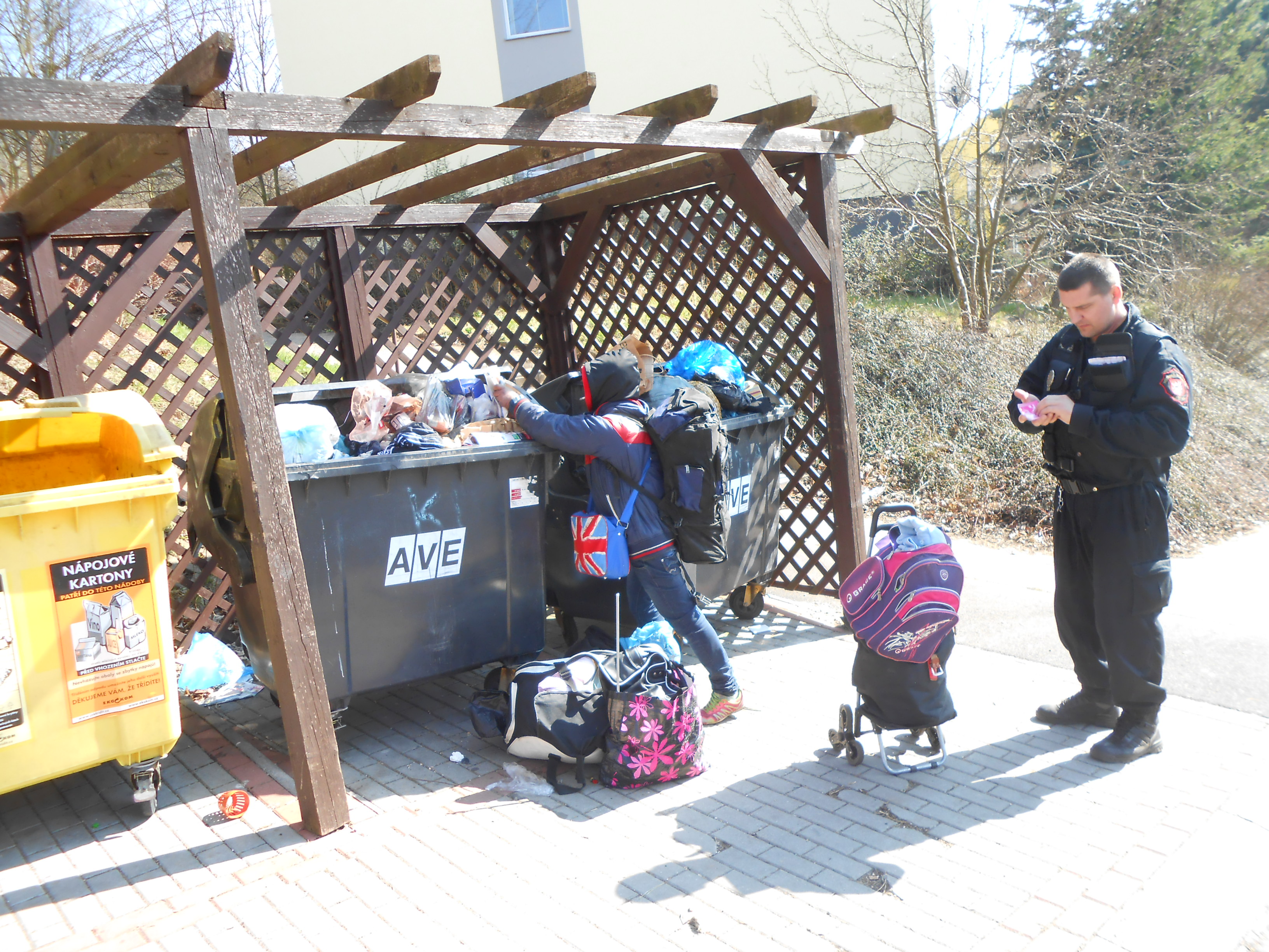 Dne 23.3.2015 v 12,40 hod., prováděla hlídka strážníků kontrolní činnost v městské části Stříbrníky, kde si v ulici Šumavská všimla ženy, která se přehrabovala v popelnicích a po sobě zanechávala na zemi značný nepořádek. Šetřením bylo zjištěno, že se jedná o Evu G.(1975), kterou strážníci donutili nepořádek po sobě uklidit a z místa ji vykázali.
