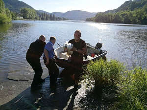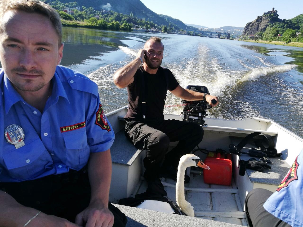 Dne 19.6.2017 v 16,50 hod., byl na žádost operačního střediska městské policie proveden výjezd strážníků ze skupiny operačního zákroku ke zdymadlům na Střekově, odkud zároveň telefonovali dva občané na tísňovou linku městské policie, kteří operátorovi sdělili, že se u břehu řeky pohybuje evidentně zraněná labuť. Strážníkům se na místě pomocí člunu a odchytové sítě zraněnou labuť podařilo po půl hodině odchytili a po jejím zklidnění byl opeřenec odvezen do městského útulku pro opuštěná zvířata, kde byla labuť předána odpovědným pracovníkům.