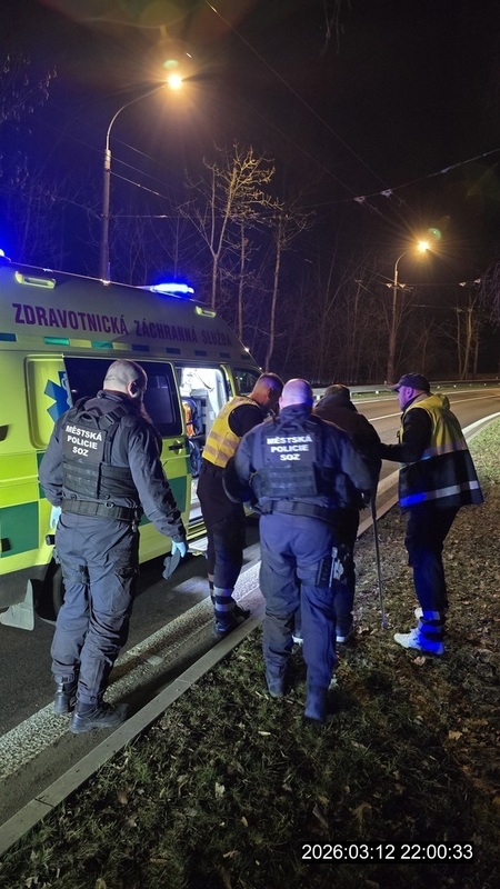 Dne 12.3.2026 v 21,50 hod., byla vyslána hlídka strážníků do ulice Mezní, kde dle oznamovatele mělo v trolejbusu dojít k pádu a následnému zranění jednoho z cestujících. Šetřením na místě bylo zjištěno, že při brždění trolejbusu muž středního věku upadl a udeřil se do hlavy. Dotyčný měl krvácivé poranění v zátylku. Strážníci ihned začali poskytovat zraněnému první pomoc. Téměř současně se na místo dostavila i zdravotní záchranná služba, která si muže od strážníků převzala a odvezla do Masarykovy nemocnice k vyšetření.