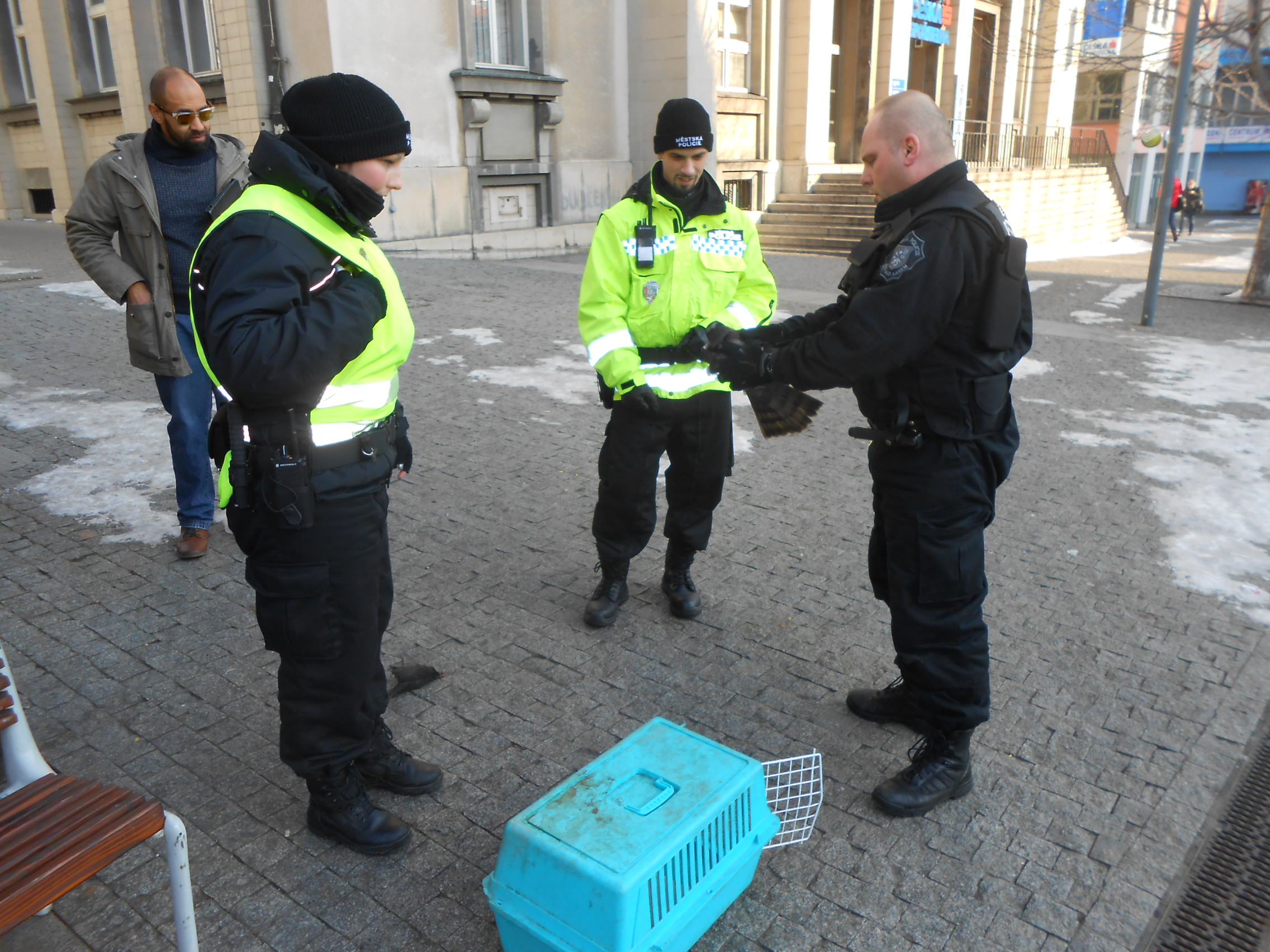 Dne 27.1.2017 v 11,38 hod., prováděla hlídka strážníků kontrolní činnost v centru města, kde si na Mírovém náměstí všimla zraněného dravce, který se pokoušel uletět, ale vzhledem k jeho poranění se mu to nedařili. Na místo byli přivoláni strážníci ze skupiny operačního zákroku, kteří opeřence odchytili a převezli ho do ZOO, kde byl dravec předán veterináři k ošetření. Jednalo se o káně lesní.