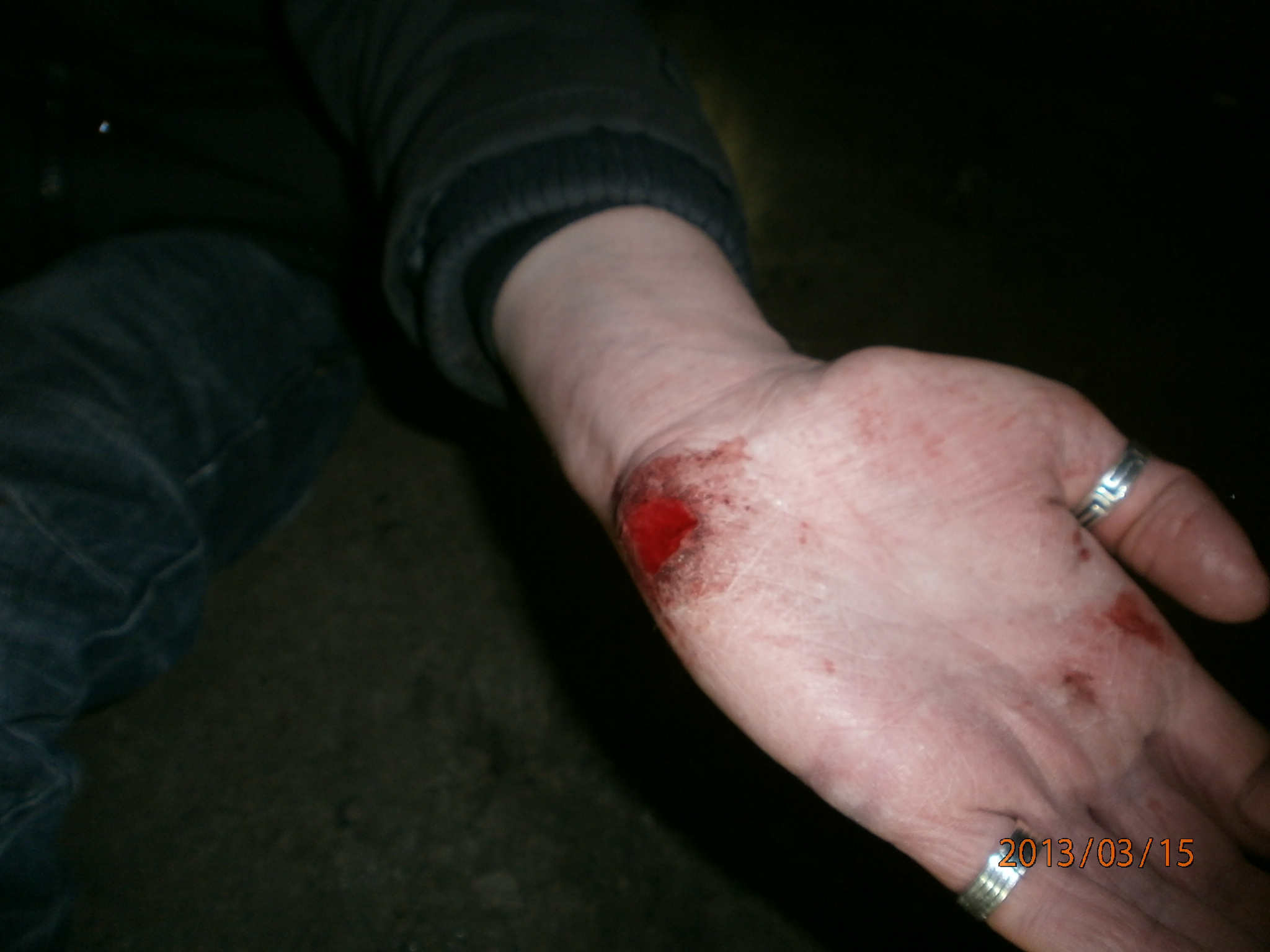 Dne 15.3.2013 v 00:40 hodin, byla na žádost operačního střediska městské policie vyslána hlídka strážníků do ulice Masarykova, kde se nacházel muž, který volal na tísňovou linku městské policie a požadoval lékařské ošetření, jelikož měl zraněnou ruku. Po příjezdu hlídky na místo zde byl zjištěn pan David H.( 1984), který hlídce uvedl, že se zranil na levé dlani a chtěl si zavolat lékařskou pomoc, když v tu chvíli k němu přiskočil neznámý muž a vytrhl mu z ruky mobilní telefon a rovněž peněženku s doklady a hotovostí cca 600,- Kč, kterou měl na řetízku připevněnou ke kalhotám a poté utekl. Po tomto zjištění strážníci muži zranění na ruce ošetřili a přes operační středisko na místo přivolali hlídku PČR, která si celý případ převzala k dořešení.
